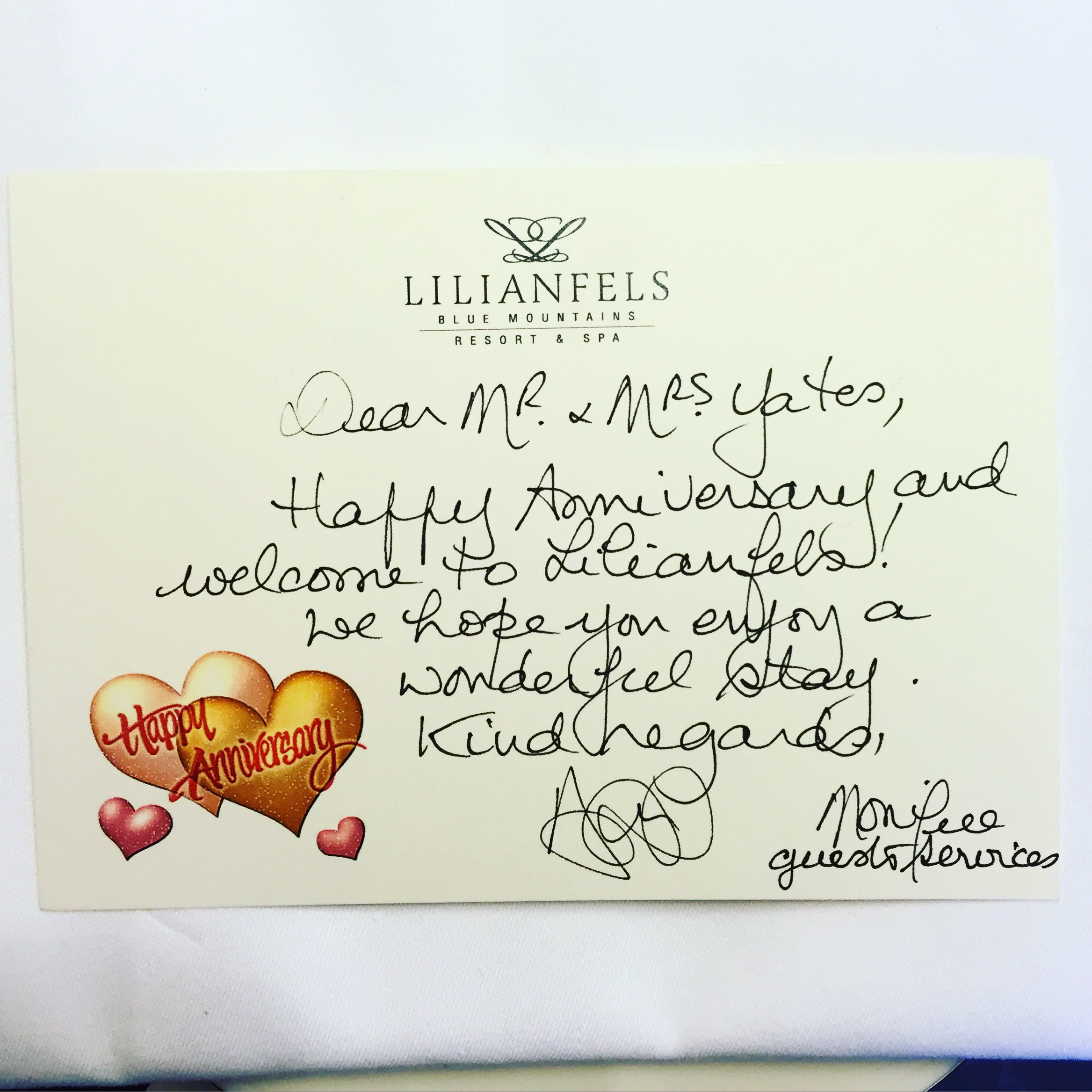 One year has flown! We spoilt each other with a beautiful night away at Lilianfels in the Blue Mountains while Noni and Jim looked after the boys!!