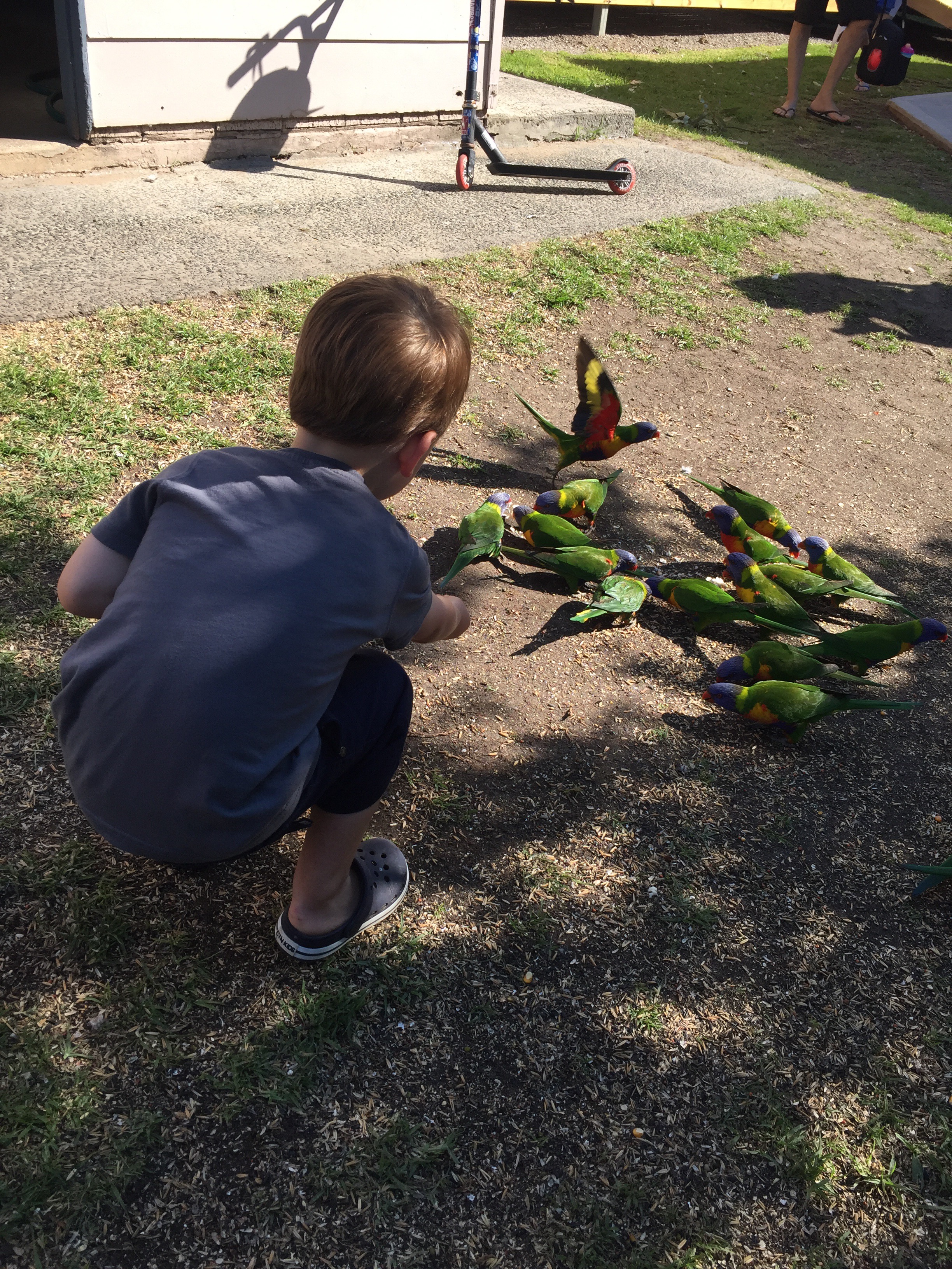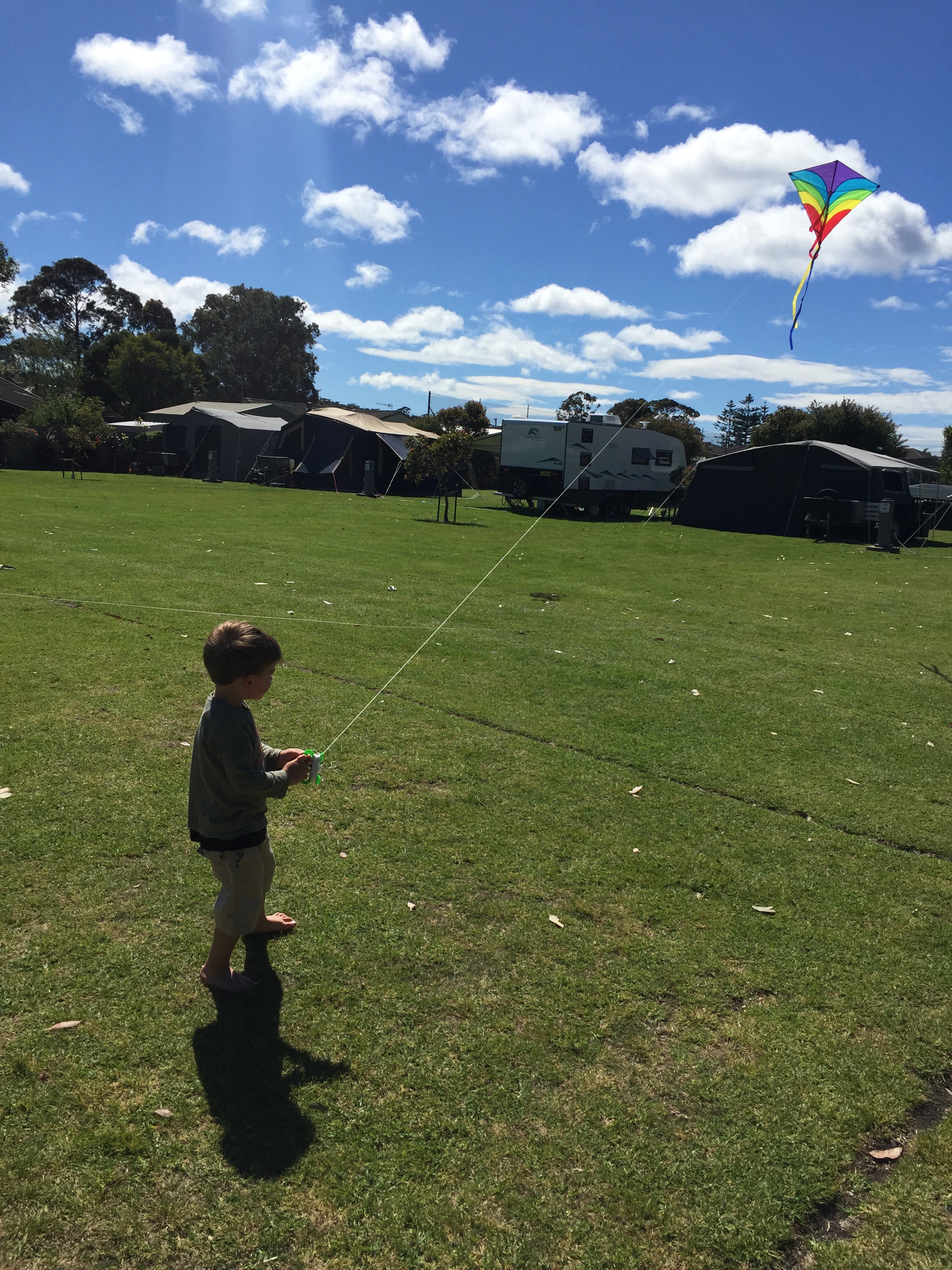 This October Long weekend Geoff took an ADO on the Friday so we could make a 4 day weekend and get away to the NSW South Coast near Ulladulla to the Burrill Lake Big4. We weren’t dissapointed when we found loads to do for Will including a jumping pillow, awesome flat grounds to learn to master his pedal bike (with no training wheels), a few jetty’s on the lake’s edge to watch other people fishing, lorikeet bird feeding, Cockatoos that could say ‘Happy Birthday’, pelicans fishing and open space to fly his kite.