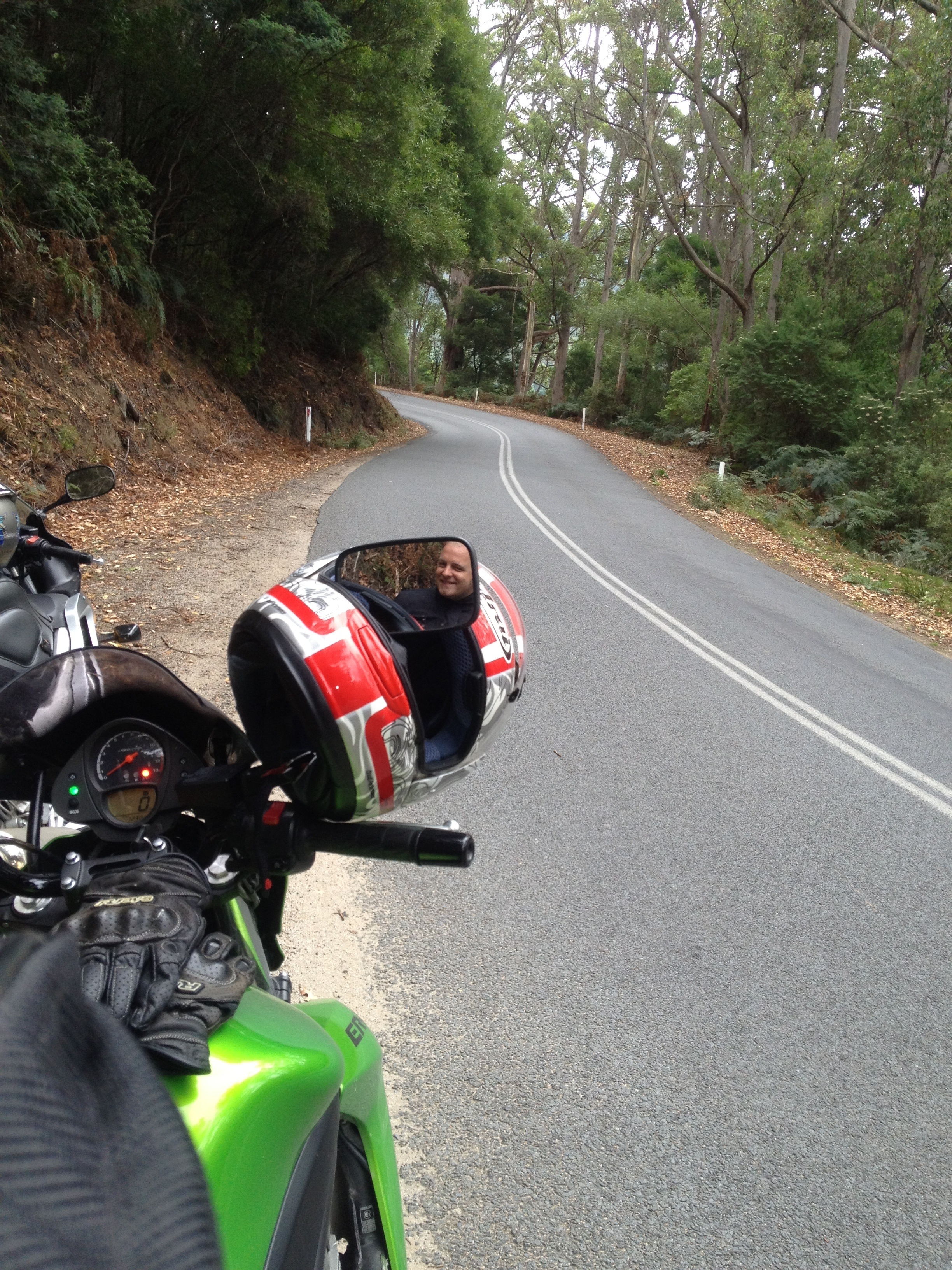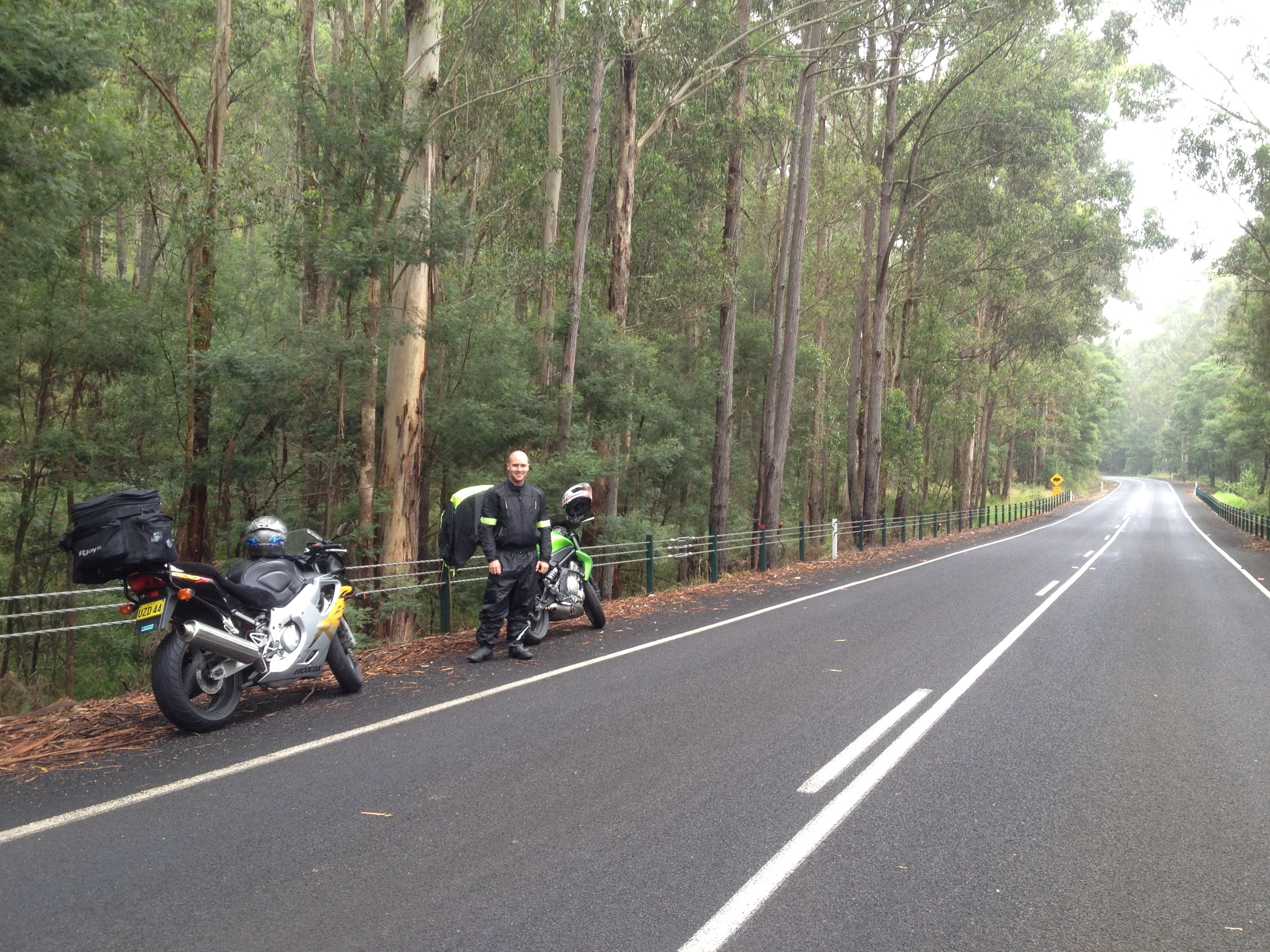 After a brief stop under shelter in Moe we then headed towards Mt Baw. The spectacular scenery was breath taking through windy rain forested rds. We should have filled up with petrol which left us needing to take a slight deviation to Neerim Junction in the nick of time before the friendly shop owner closed up for the night.