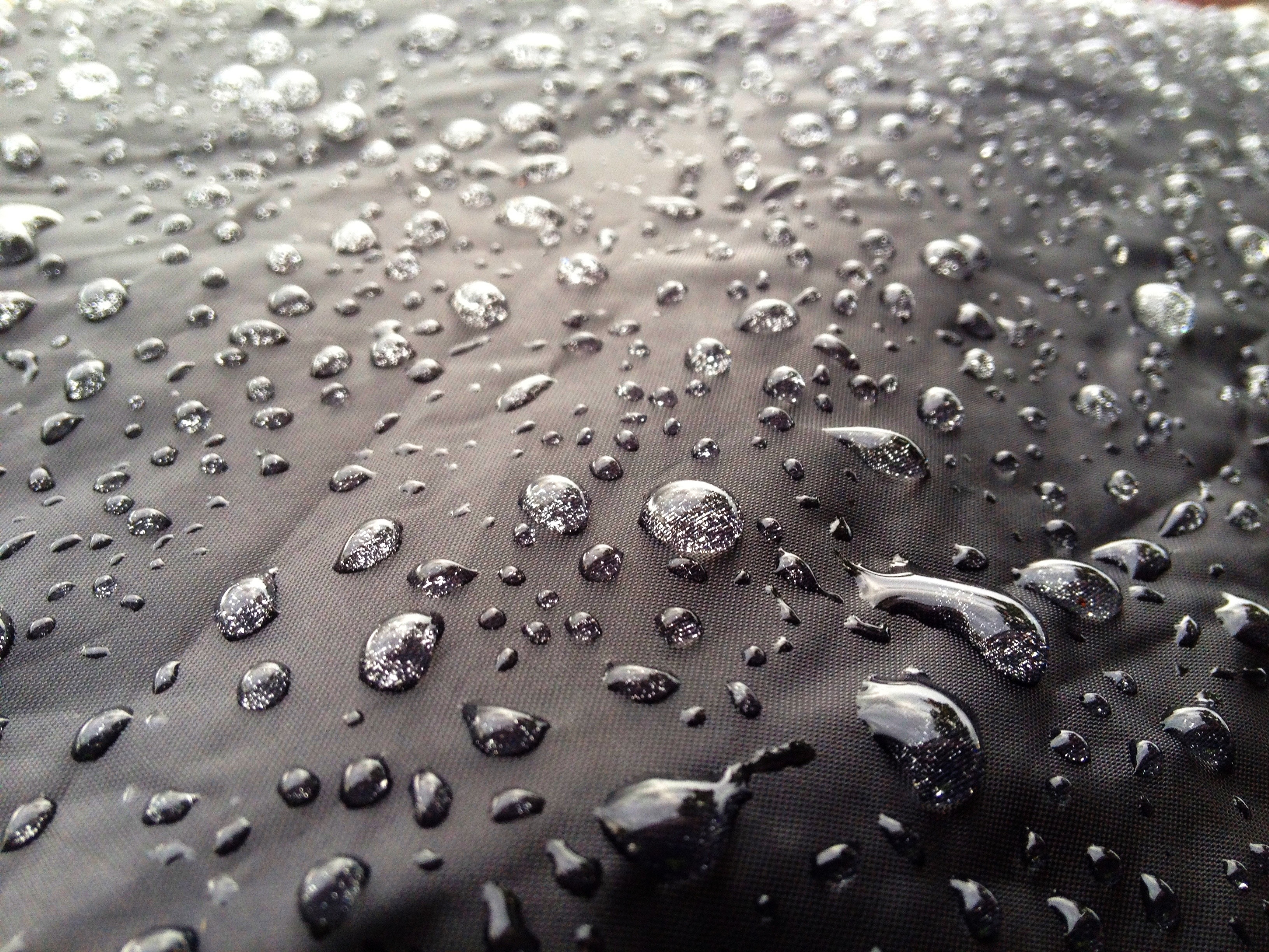 Raindrops on Geoff’s bag: