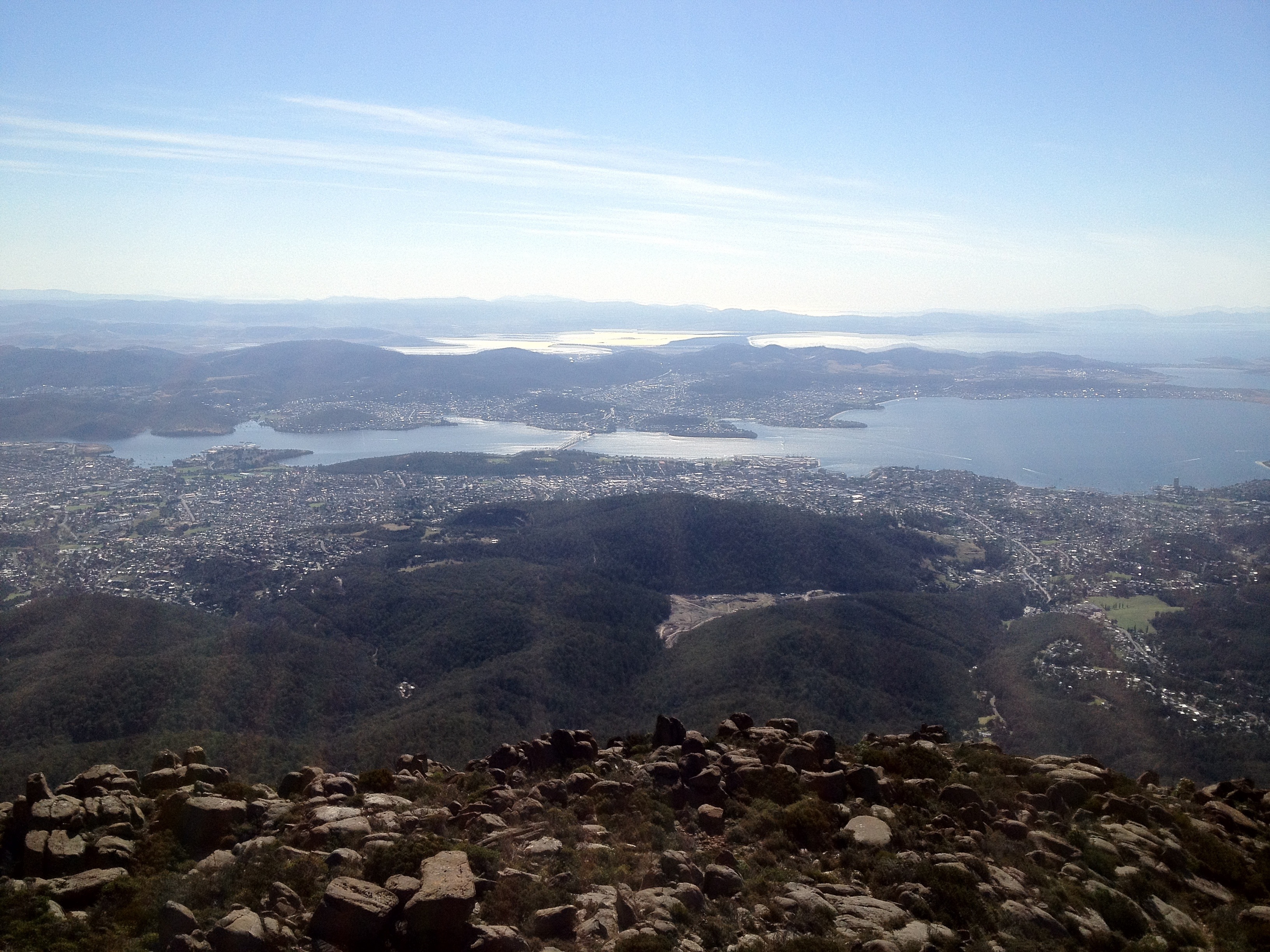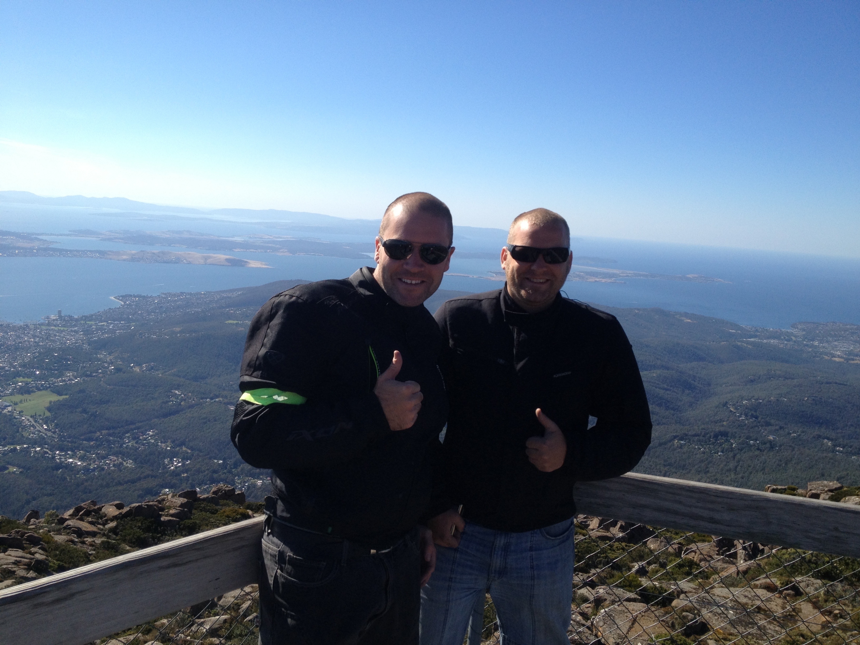 With the forecast for today to hit the mid 30’s we knew it was going to be a little challenging in all our gear. We made the ascent up to Mt Wellington, approx 1300m above sea level where it was incredibly windy. Parking our bikes so they didn’t blow over took some time! Wind gusts of up to 75km/hr was full on but we had a blast and it was a really clear day!
