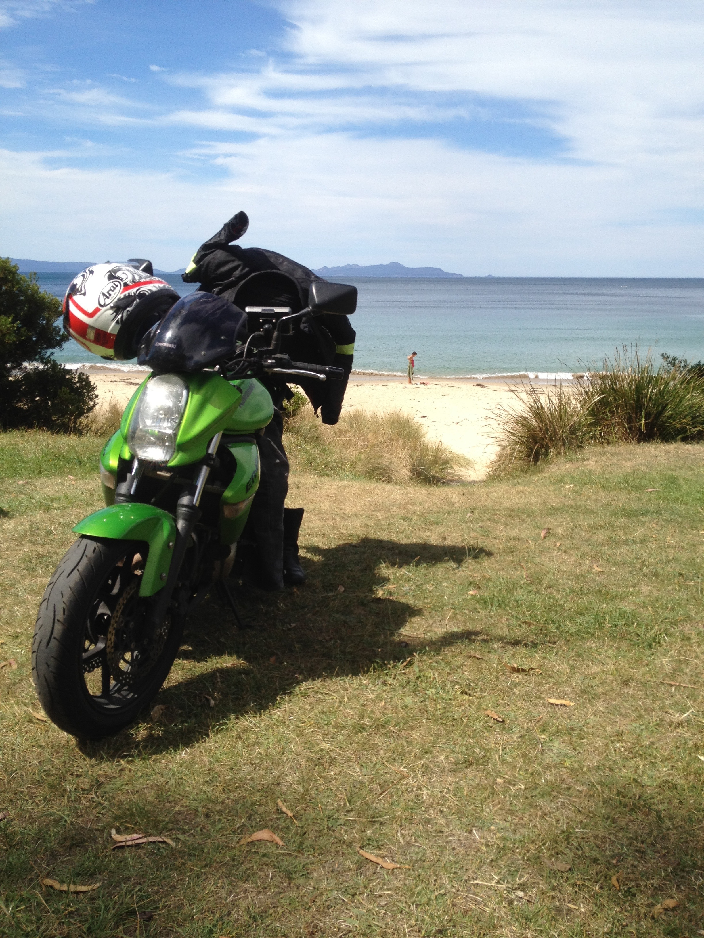 After weaving our way down from Eden on the NSW far south coast we started off with sunny skies! It really was great to start out without our wet weather gear on and begin to dry out our previously damp jeans from the previous day!