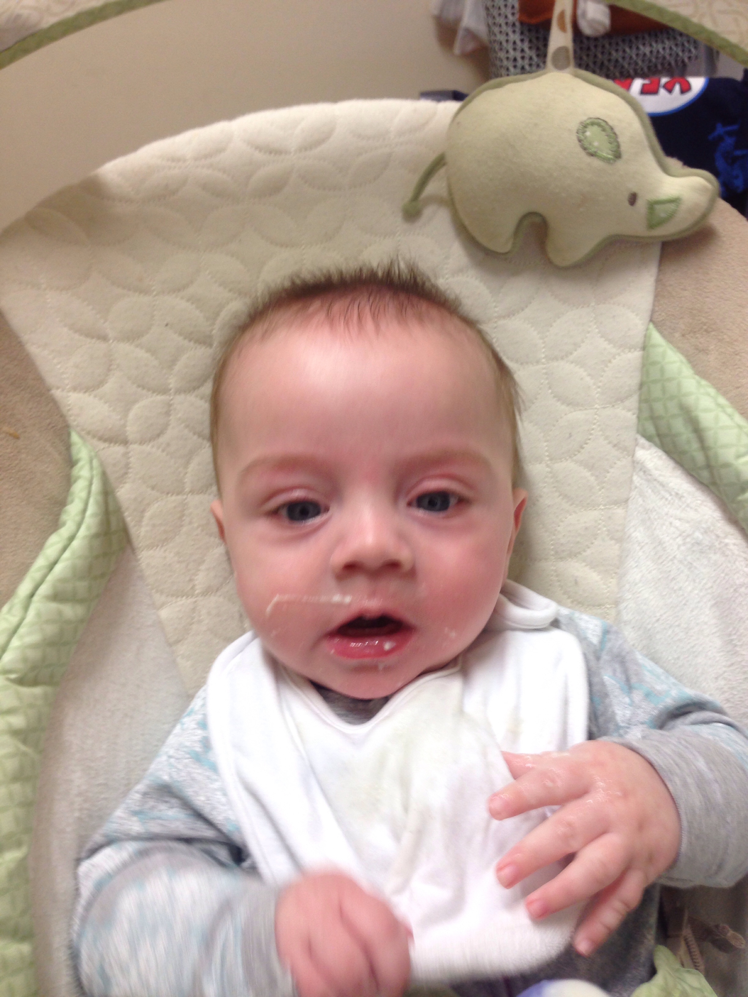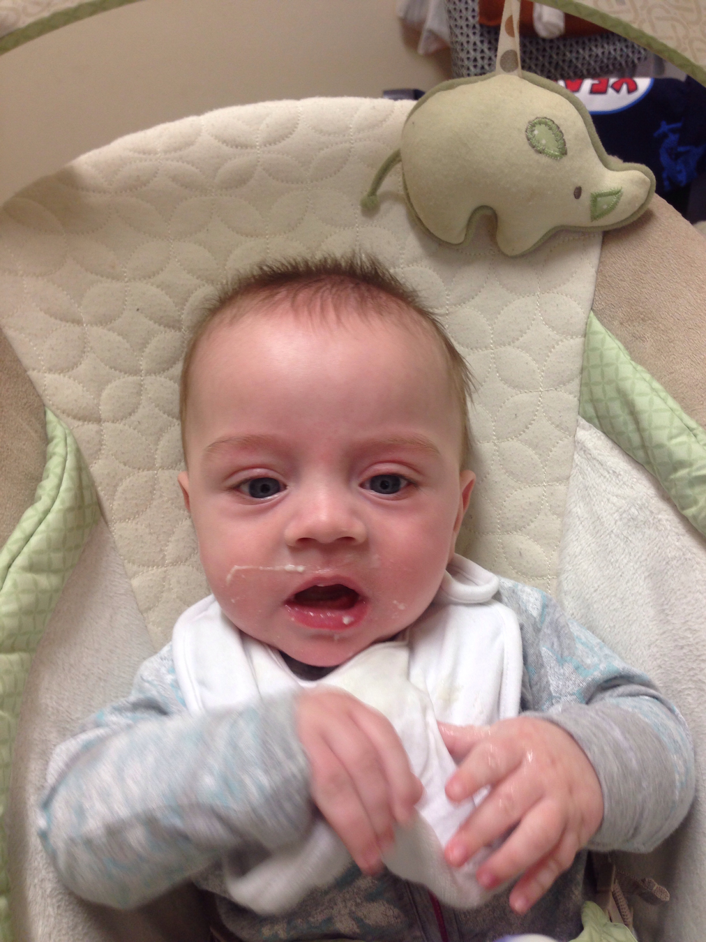Well yesterday was the day for Jack to start solids!! The bubs had some rice cereal, William filmed it, I fed him