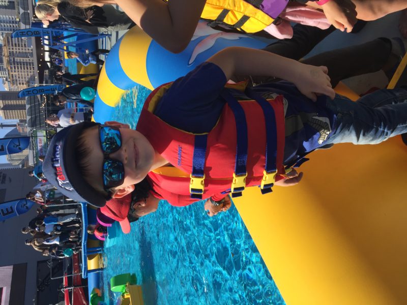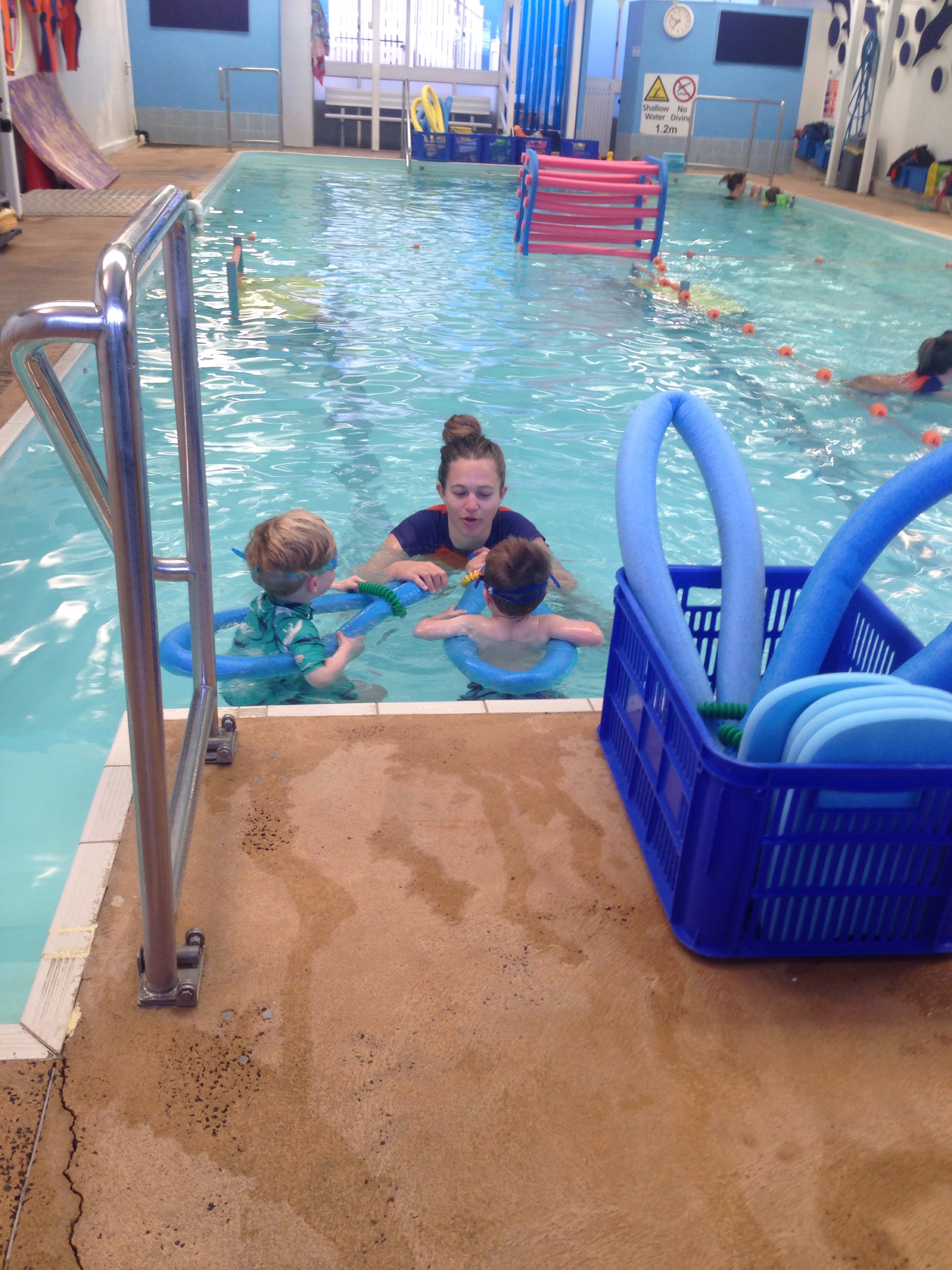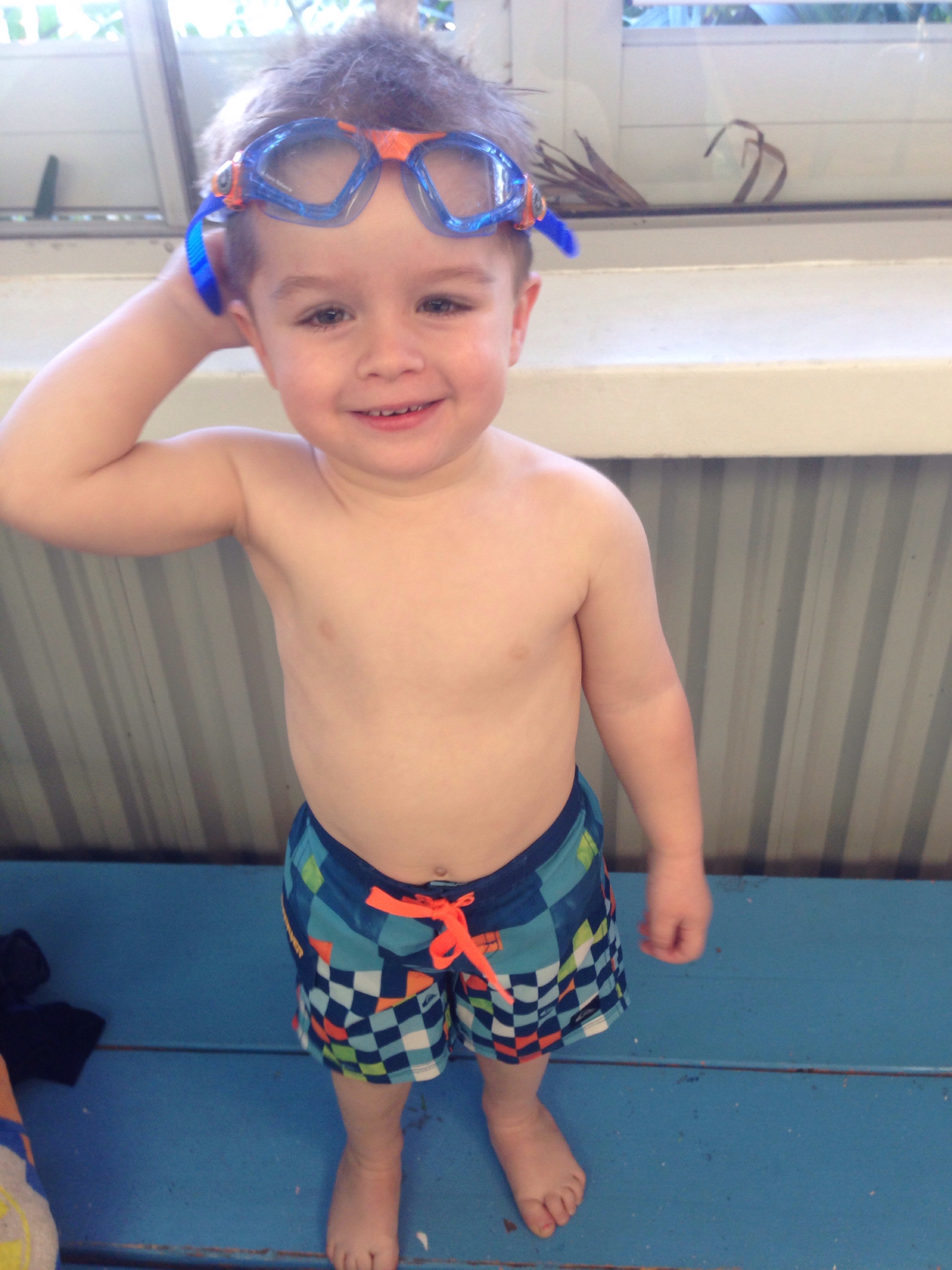 He starts big boy swimming today even though still 6 months of 3, he is ready so they have put him up a class!!
