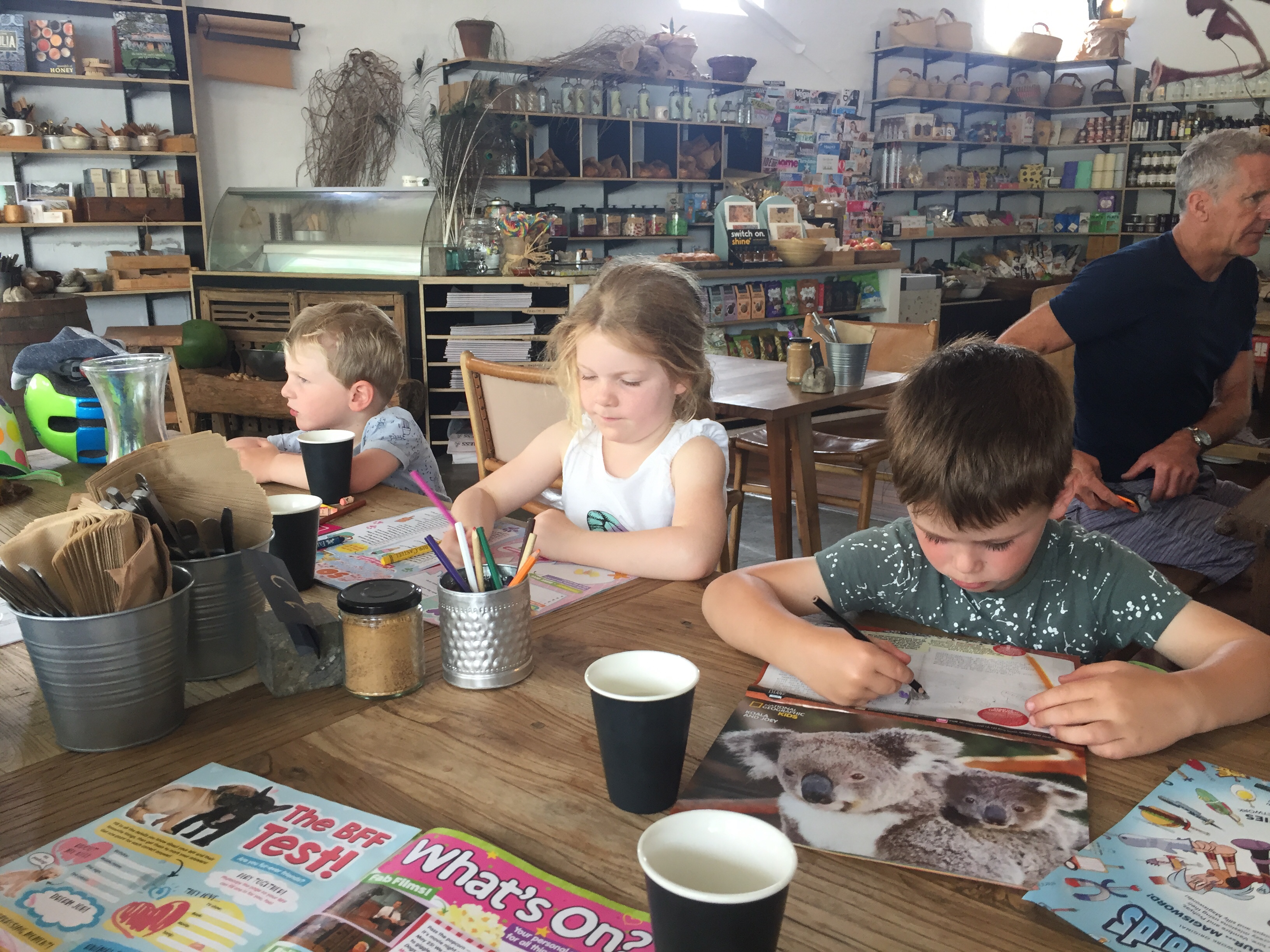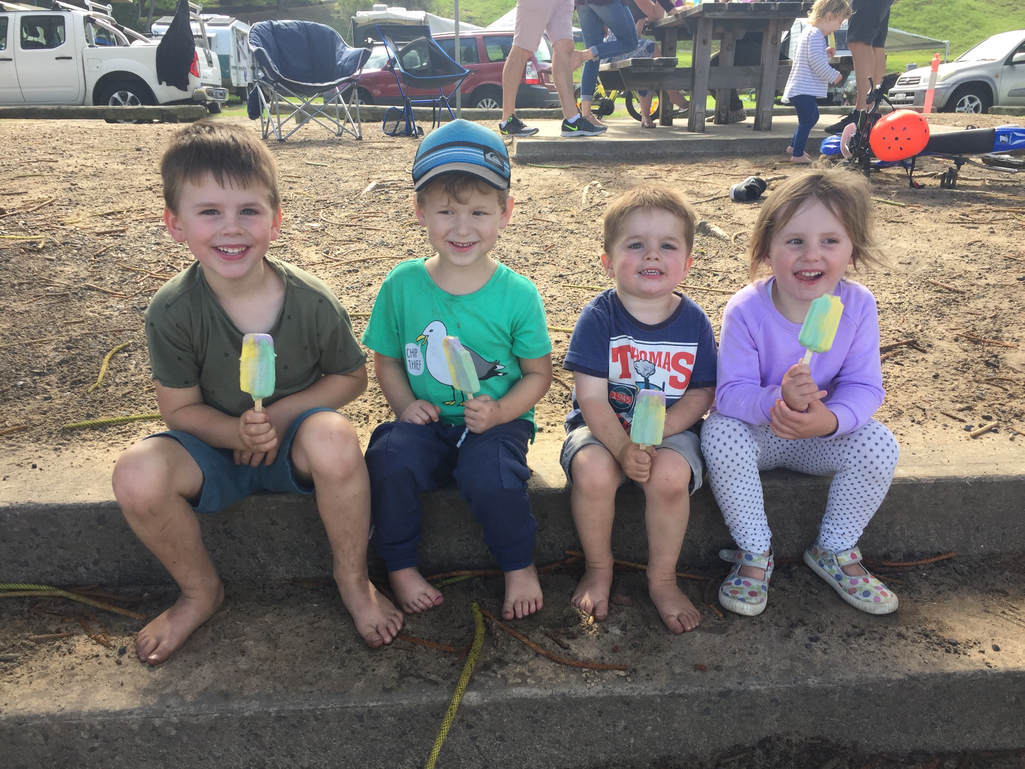 This weekend we spent down at Santuary Point with Nanna, Poppy, Angus and Callum. The weather was fairly average but we did get a nice day on Saturday and we walked to the shops where we had coffee and some snacks. After that all of us except Poppy went to Green Patch – it was gorgeous. Callum decided despite the cold water he would do some snorkelling, the boys had a beautiful time.
